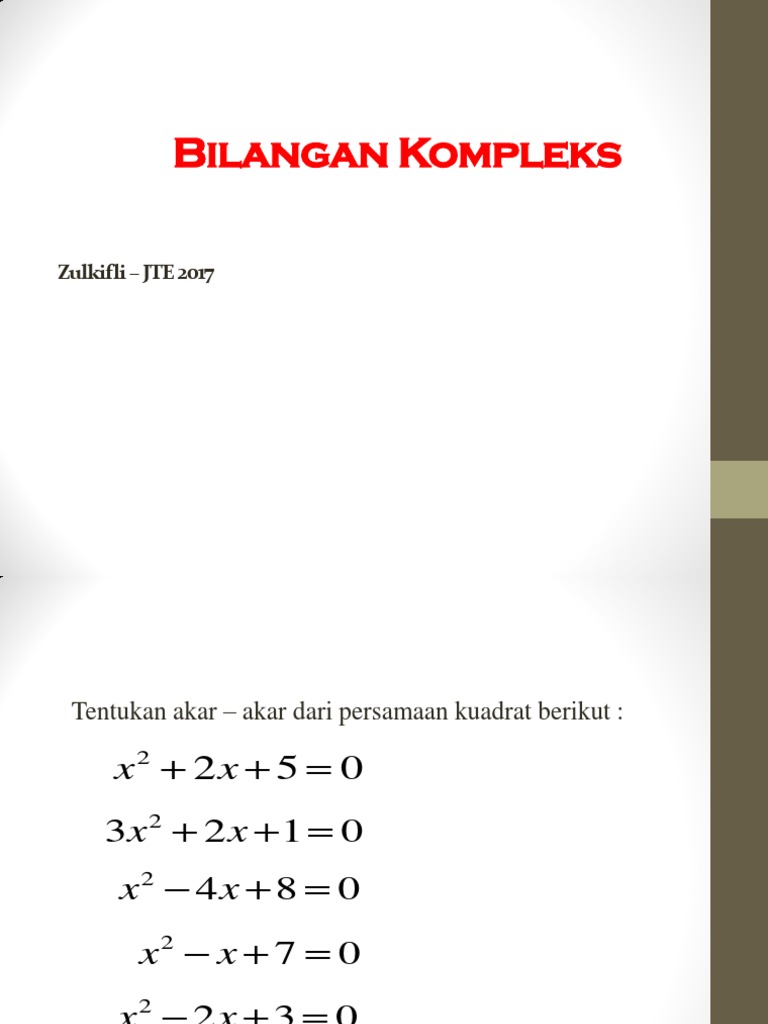 System Bilangan Kompleks Merupakan Perluasan Dari System Bilangan Riil.