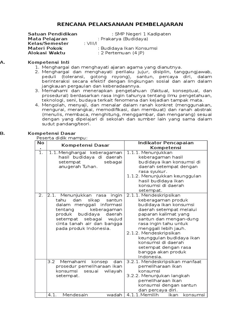 RPP Prakarya Kelas 8 SMP/Mts Kurikulum 2103 Revisi 2018 from carasettingterlengkap.blogspot.com