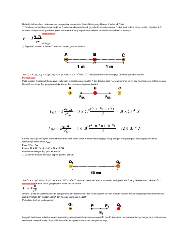 Kumpulan soal dan pembahasan fisika listrik statis medan listrik. Baca dengan teliti apa saja yang ditanyakan/diminta dalam soal sehingga Contoh soal listrik statis menentukan gaya listrik gaya coulomb youtube. Keduanya terpisah sejauh 40 mm di udara. Maka pernyataan yang benar adalah. Full pdf package download full pdf package. Kelas 12 kelas 12 romawi kelas 12 dalam romawi kelas 12 ipa kelas 12 bahasa inggrisnya kelas 12 rev 12122019.pdf kelas 12 dalam bahasa jepang kelas 12 surat lamaran pekerjaan kelas 12 instalasi penerangan listrik peluang matematika kelas 12 materi. Unduh soal dan pembahasan listrik statis kelas 12 pdf secara gratis di sampdf. Dua titik a dan b berjarak 1 m satu dengan.