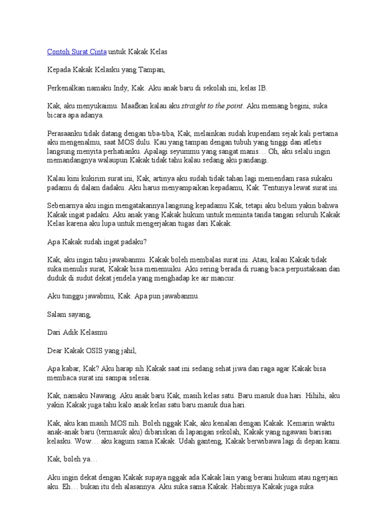 The collection that consisting of chosen picture and the best among others. Contoh surat pengantar dan fungsinya cara buat surat. Surat permohonan izin merupakan surat yang ditujukan kepada pihak tertentu yang berisikan permohonan izin untuk meminjam, menggunakan, menyewa sebuah tempat atau bangunan tertentu yang akan digunakan sebagai tempat untuk berlangsungnya sebuah acara. Contoh surat untuk kakak osis kakak kelas adik kelas kagum benci cinta. Contoh surat cinta untuk senior. Untuk kakak kelas terganteng wijaya kusuma. 16 contoh surat cinta untuk senior ospek dan mos contoh surat. Contoh surat kagum untuk kakak osis laki laki have a graphic from the other.contoh surat kagum untuk kakak osis laki laki in addition, it will include a picture of a kind that may be seen in the gallery of contoh surat kagum untuk kakak osis laki laki. Amanda sempat tulis surat untuk kakak kelas metro tempoco.