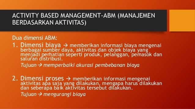 Rifqy abdillah arfan ramadhan pramadita yuliana a. Menurut garrison dan noreen ( 2003: 316 ) mendefinisikan activity based costing yaitu activity based costing is a costing method that is designed to provide managers cost information for strategic and other decision that potentially affect capacity and therefore “. Materi 3 activity based management 1. Akutansi manajemen abc amp abm. Soal jawab abm kampus ku soal latihan activity based management soal 1 berikut ini. Activity based costing (abc) adalah metode costing yang dirancang untuk menyediakan informasi bagi manajer untuk keputusan stratejik dan keputusan lainnya yang mungkin akan mempengaruhi kapasitas dan juga biaya tetap. Materi bab 2 basic management accounting concepts, akuntansi manajemen buku hansen & mowen edisi 8. The abm method permits the proper allocation of the resources to activities, helping to improve production and reduce their costs, based on analysis done through abc method.