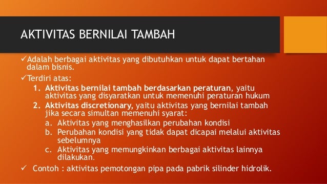 Model ini berfokus pada biaya produksi tidak langsung, berbeda dengan metode alokasi biaya penyerapan dari penetapan biaya tradisional. Assalammualaikum, selamat datang di kelas ips. Metode activity based costing adalah metode yang berfungsi untuk mengalokasikan semua biaya dari berbagai sumber daya yang digunakan dalam menjalankan aktivitas produksi atau menjalankan usaha jasa. Activity based management abm definisi activity based management abm atau manajemen berdasarkan aktivitas adalah pendekatan yang luas dan terpadu yang memfokuskan perhatian manajemen pada aktivitas dengan tujuan perbaikan nilai pelanggan dan laba yang dicapai dengan menyediakan nilai ini hansen dan mowen 2004. Untuk mengetahui lebih jauh pembahasan tentang activity based costing dan penerapannya dalam bisnis, kawan. Pengertian activity based costing activity based costing adalah salah satu metode yang bisa kamu lakukan untuk menghitung biaya dengan akurat. Pertanyaan tentang activity based management inilah pertanyaan tentang activity based management dan hal lain yang berhubungan erat dengan pertanyaan tentang activity based management serta aspek k3 secara umum di indonesia. Oleh ibu guru diposting pada 01/10/2021. Doc activity based management raviqa rahma academia edu.