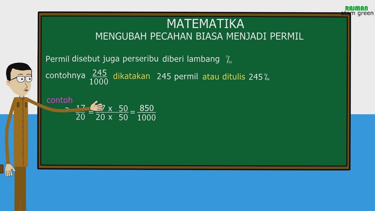 Apa itu bentuk tangga turunan atau emang ketetapan 10.000 tu min.mohon penjelasannya min. Cara menghitung permil dan mengubah permil ke pecahan biasa, desimal, dan persen. Ubahlah 2,5 % ke bentuk pecahan biasa! Sederhanakan pecahan ke bentuknya yang terkecil. Namun dalam mengubahnya, kita harus tahu bagaimana cara yang mudah dan tepat. Jadi bentuk pecahan biasa dari 2,5% adalah 2 1 / 2. Persen dan permil merupakan suatu bentuk pecahan bilangan. Kalikan angka pecahan biasa dengan 1.000 langkah 2: Mengubah pecahan menjadi permil dapat dilakukan dengan 2 cara:
