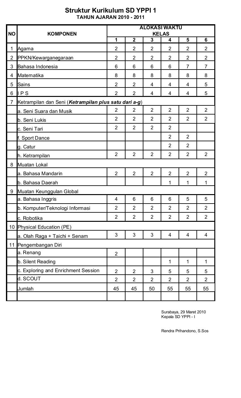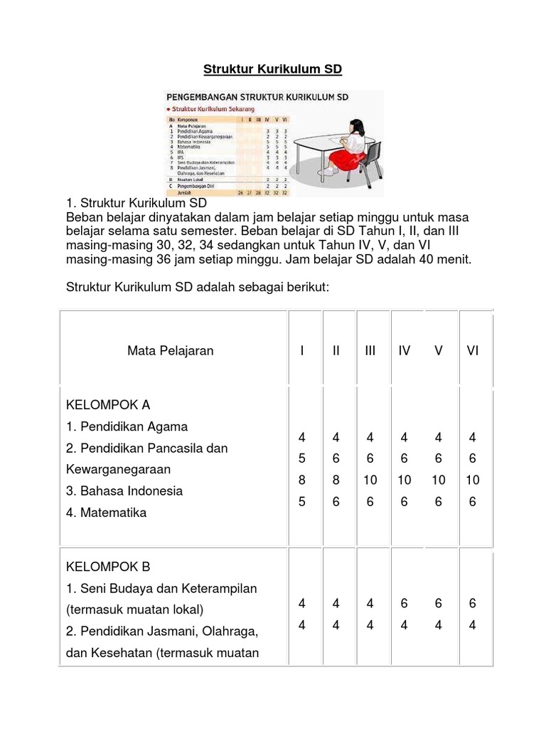 Jam belajar sd/mi adalah 35 menit. Sistem paket yang dialokasikan dalam struktur kurikulum sd adalah sebagai berikut : Beban belajar dinyatakan dalam jam belajar setiap minggu untuk masa belajar selama satu semester. Mata pelajaran muatan lokal merupakan mata pelajaran yang dapat diselenggarakan berdasarkan keputusan pemerintah daerah. Alokasi jam pelajaran pada struktur kurikulum dituliskan secara total dalam satu tahun dan dilengkapi dengan saran alokasi jam pelajaran jika disampaikan secara reguler/mingguan. By ij.com on wednesday, december 08, 2021. Struktur kurikulum disusun berdasarkan standar kompetensi lulusan dan standar kompetensi mata pelajaran dengan ketentuan sebagai berikut : Projek penguatan profil pelajar pancasila untuk sd, dialokasikan sekitar 20% beban belajar per tahun. Selain kegiatan intrakurikuler seperti yang tercantum di dalam struktur kurikulum diatas.