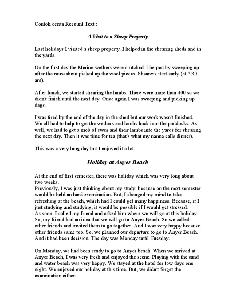 Atau lebih singkatnya cerita pengalaman atau peristiwa pada masa lalu. Essay help online service ’ order an essay online from tfth and get it contoh soal recount text essay beserta jawabannya done by experts and see the difference for yourself. The doctors say that the author is exposed to rabies 10. In 1962, he won an essay competition. Dan ini ialah jawaban dari soal recount text diatas. 50 contoh soal recount text bahasa inggris dan kunci jawaban. 1.what is the topic of the text? We are writing all soal essay recount text smk types of papers, regardless of soal. Karena hal ini sangat menyenangkan, terlebih lagi bila liburan gratis!