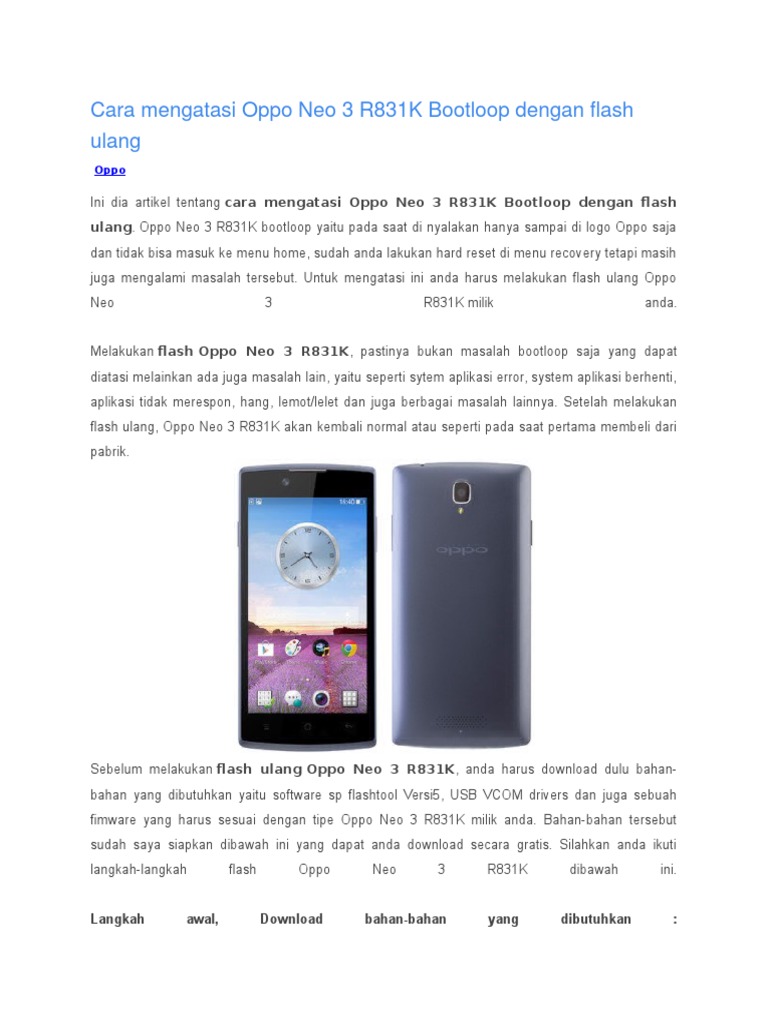 Download salah satu versi sp flash tool, usb driver, dan stock rom firmware neo 3 r831k di atas. Cara ini dipilih ketika semua cara sudah tidak bisa dilakukan. Oppo neo 3 memiliki desain yang simpel tapi dibekali juga dengan dengan desain bodi yang kompak. Cara pertamanya adalah mengunduh firmware oppo neo 3 dan pindahkan firmware ke sd card. Untuk mengatasi ponsel android neo 3 r831k yang bootloop kalian bisa flashing sendiri dengan mendownload file yang dibutuhkan dengan menggunakan laptop atau komputer, untuk lebih jelasnya kalian bisa menyimak cara ampuh flash oppo neo r381k dibawah ini : Selagi oppo neo 3 yang bermasalah bisa terdeteksi di komputer 90% akan berhasil di perbaiki dengan cara flash ulang. Buka folder hasil ekstrak sp flash tool dan carilah file flash_tool dan. Download dan install software sp flash tool. Pesan eror ini selalu muncul, jadi praktis oppo neo 3 r831k tidak bisa dioperasikan.