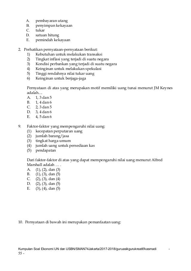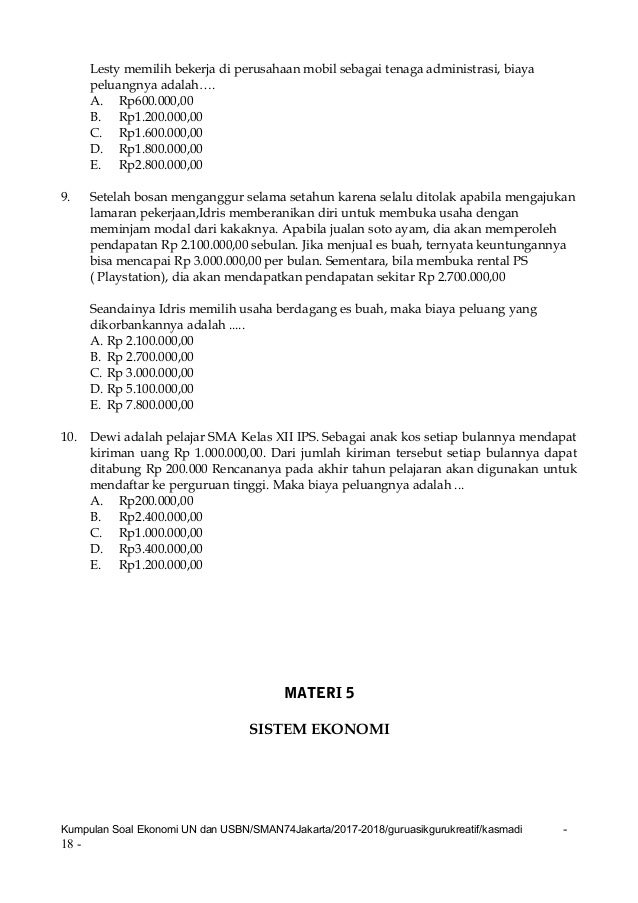 Psma peserta kegiatan terdiri dari 70 orang para guru kepala sekolah dan pengawas sma. A line drawing of the internet archive headquarters building façade. Kritik dan saran sangat saya harapkan demi kemajuan blog ini dimasa yang akan datang. Bencana alam seperti gempa bumi, banjir, dan gunung meletus yang terjadi di beberapa daerah indonesia mengakibatkan gagal panen sehingga hasil pertanian menjadi langka. Hai semuanya, sebentar lagi akan diadakan usbn dengan baik, sekarang kami telah menyiapkan sejumlah contoh soal pertanyaan usbn ekonomi yang jumlahnya sekitar 40 pertanyaan, pertanyaan ini sudah diatur oleh kami ditambah kunci jawaban. Soal latihan usbn ekonomi ini sudah sediakan kunci jawabannya dan atau. Setiap tahunnya selalu ada saja berita mengenai kebocoran soal un. Soal latihan usbn ekonomi sma bank soal latihan usbn ekonomi sma (1) 1. Download naskah asli soal usbn ekonomi sma program ips tahun 2018 kurikulum 2006.
